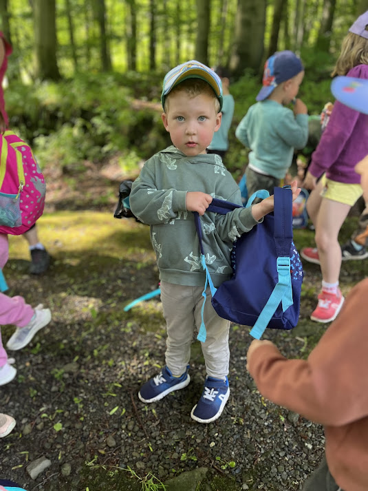 Skřítkové opět ukryli v lese poklad. Děti se nejdřív posilnily svačinkou a pak se vydaly do lesa hledat poklad.