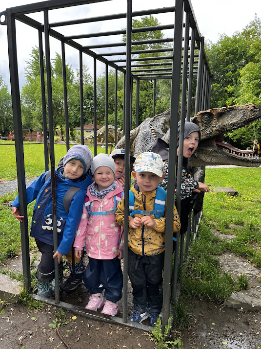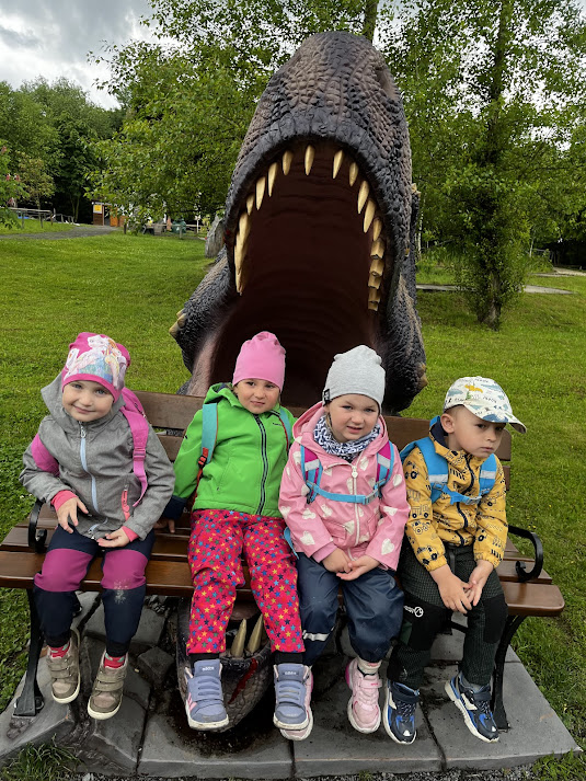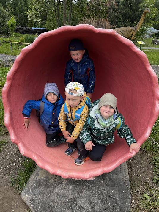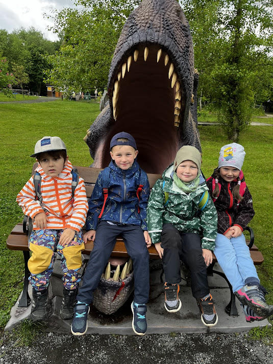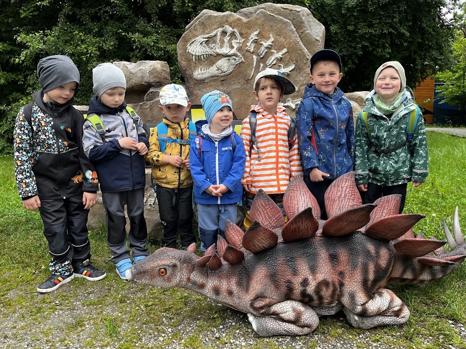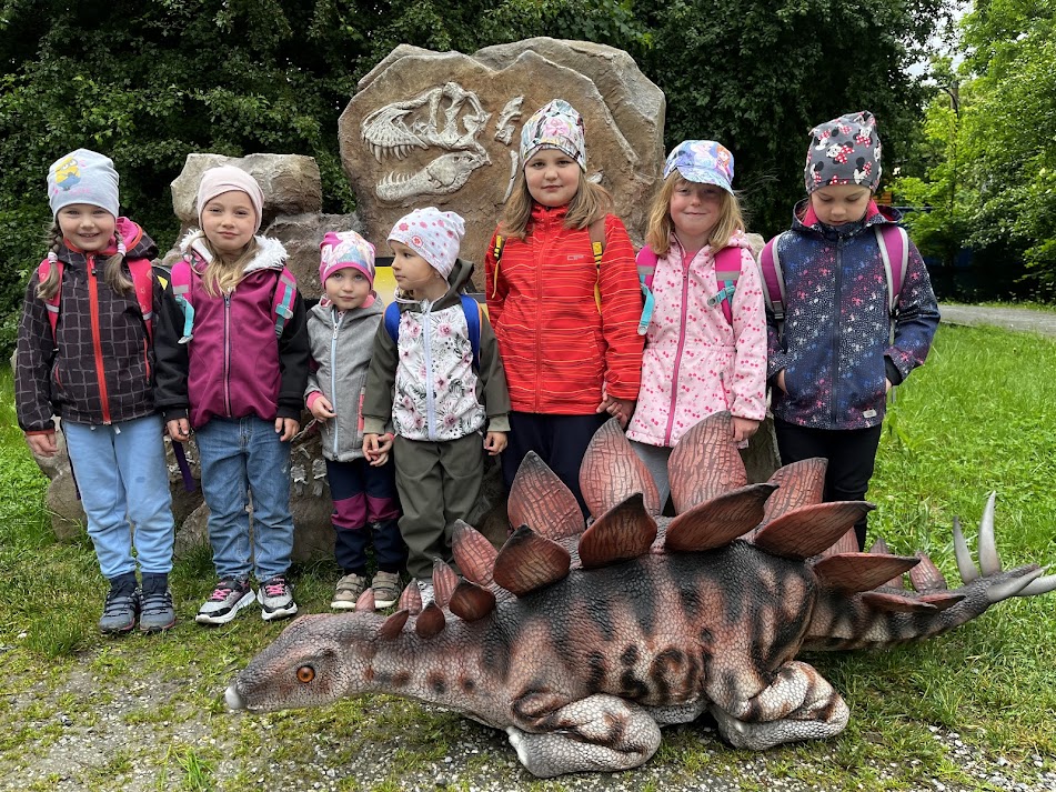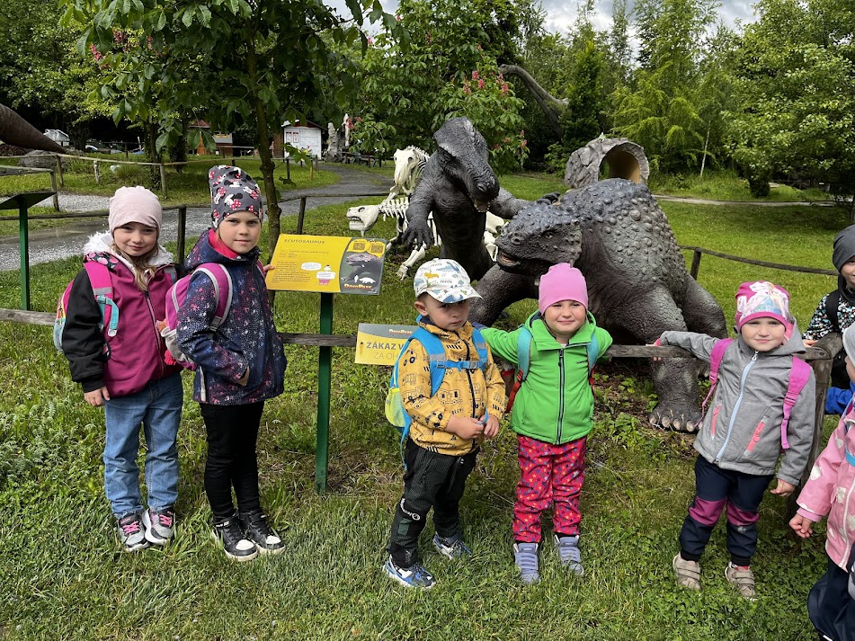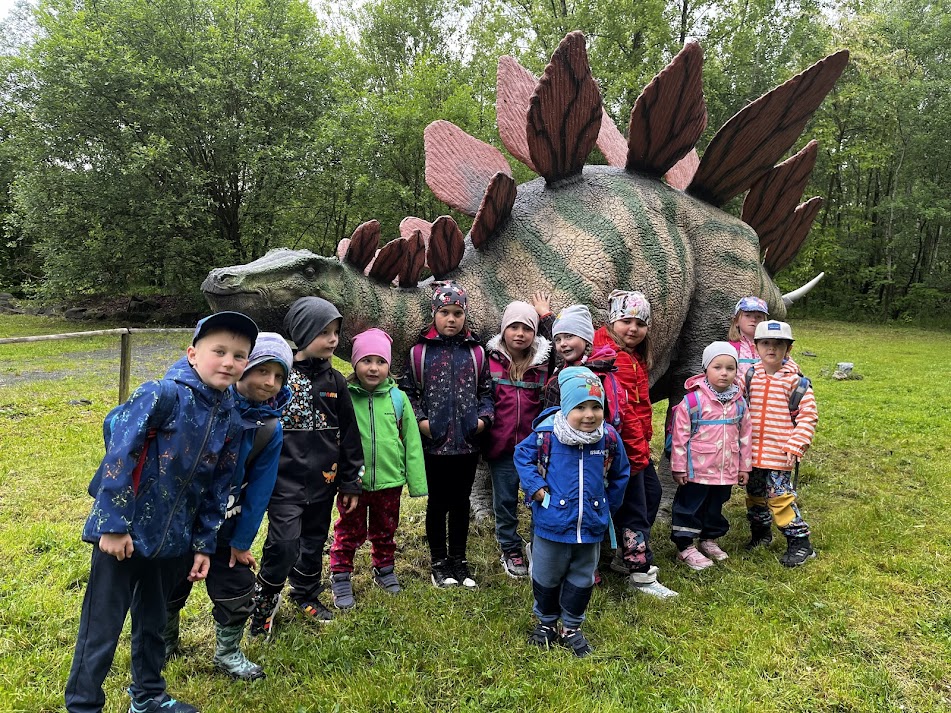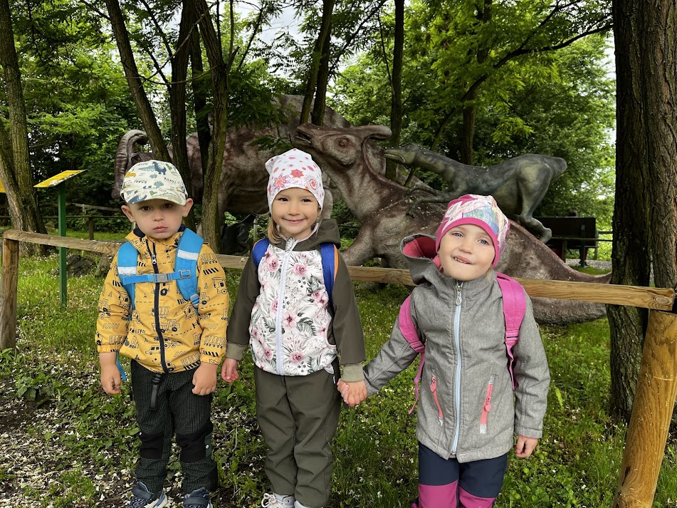 Děti v dinoparku viděly spoustu dinosaurů, zhlédly 3D kino, projely se vláčkem, našly tajemství uprostřed bludiště a doprovodily malého stegosaura do pelíšku.