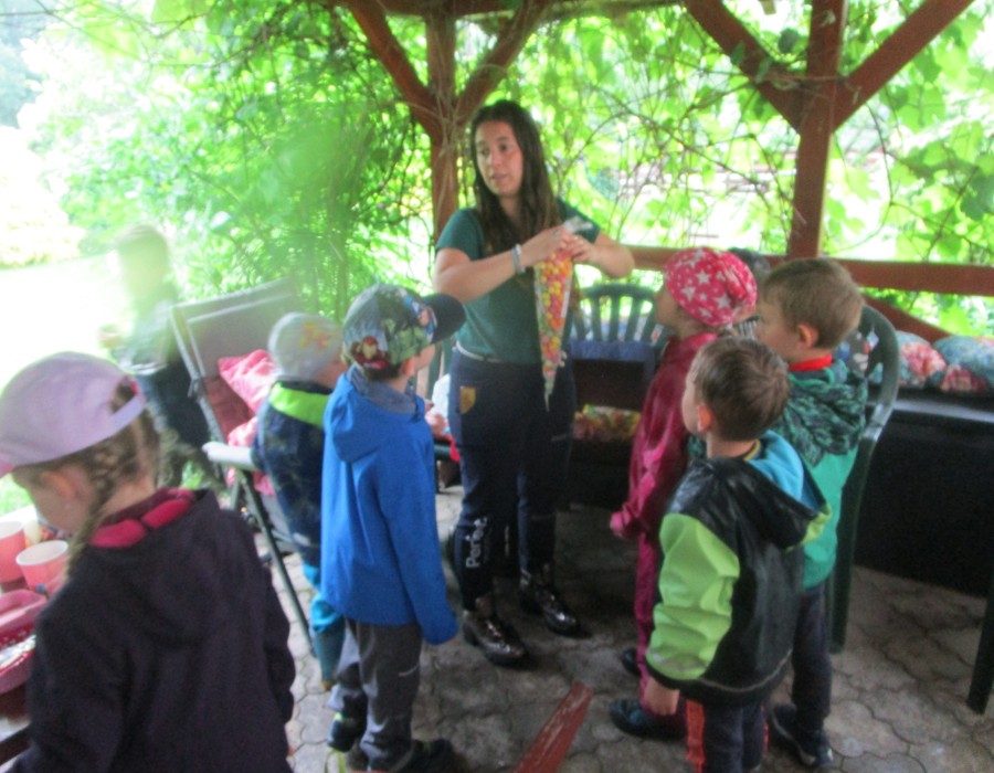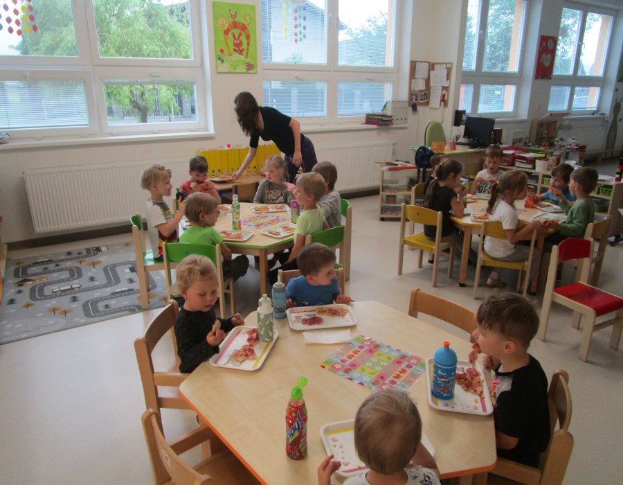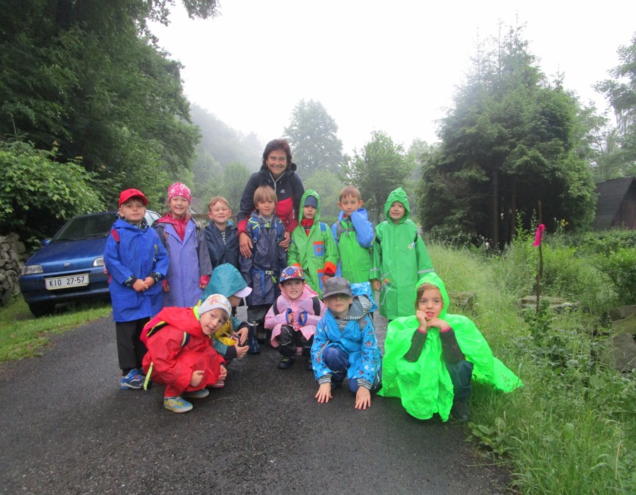 Počasí sice moc nepřálo, ale "poklad", který děti hledaly po označené stezce, nakonec našly na zahradě rodiny Wlosokové. Zahřáli jsme se teplým čajem, dobrůtkami a snědly i svačinu z domova. Po návratu do školky byla k obědu pizza. Skvěle prožitý den!